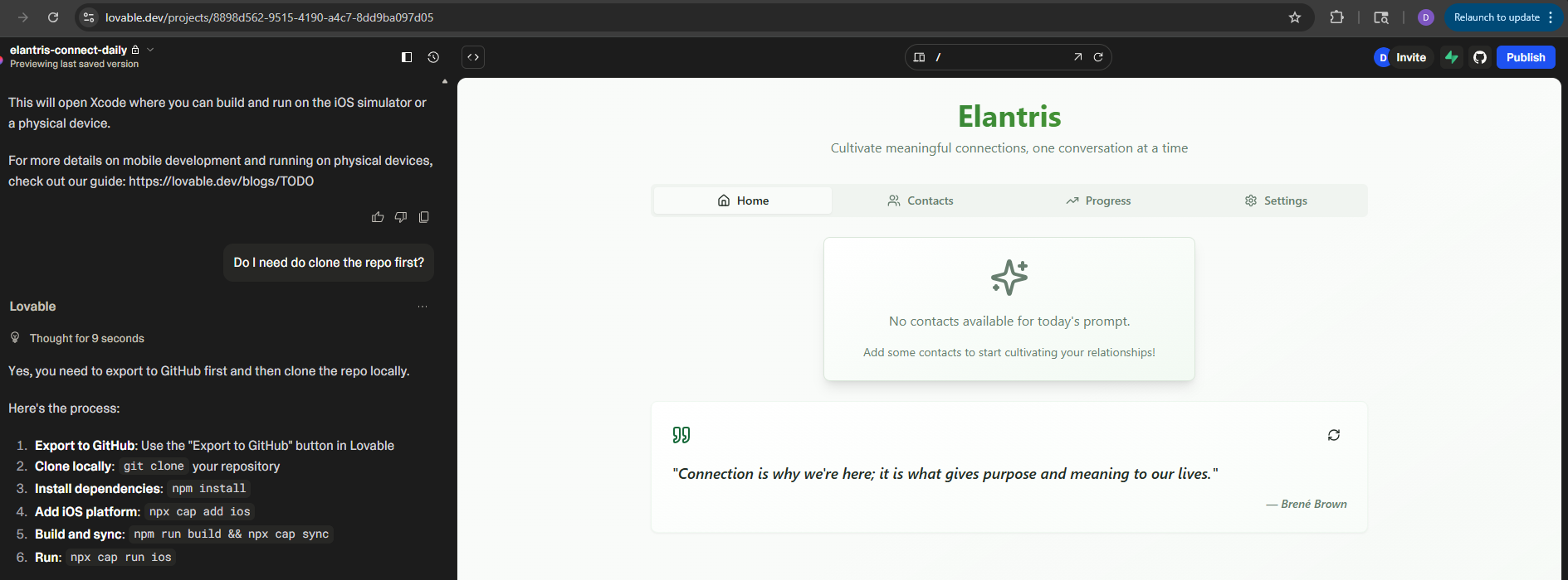 With my wife and kids out of town, I had a rare block of uninterrupted time and decided to see how far I could get with some of the new AI-powered developer tools that have been making waves. The result was Elantris – a mobile and web platform designed to help people stay connected with those who matter most through daily outreach prompts, reminders, and nudges.